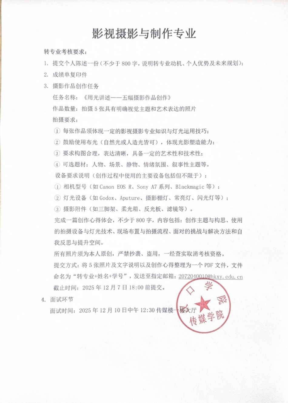 影视摄影与制作(本科)转专业考核方案.docx