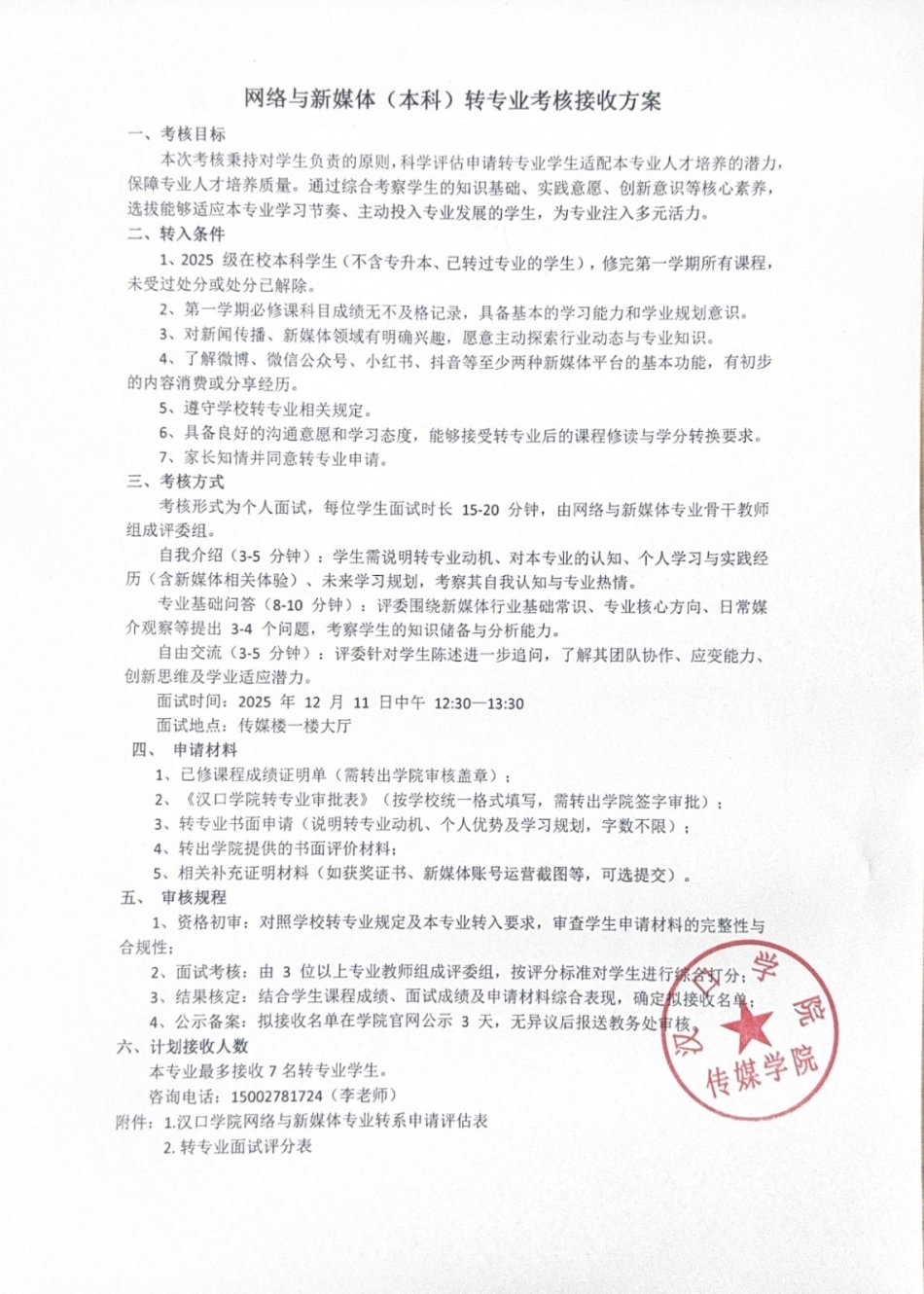 网络与新媒体(本科)转专业考核接收方案.docx