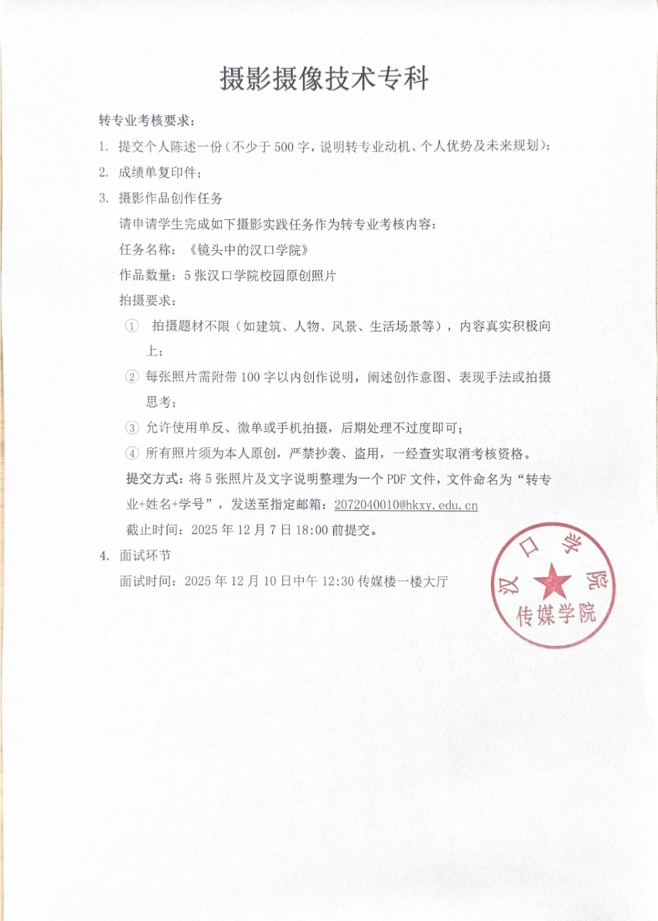摄影摄像技术(专科)转专业考核方案.docx